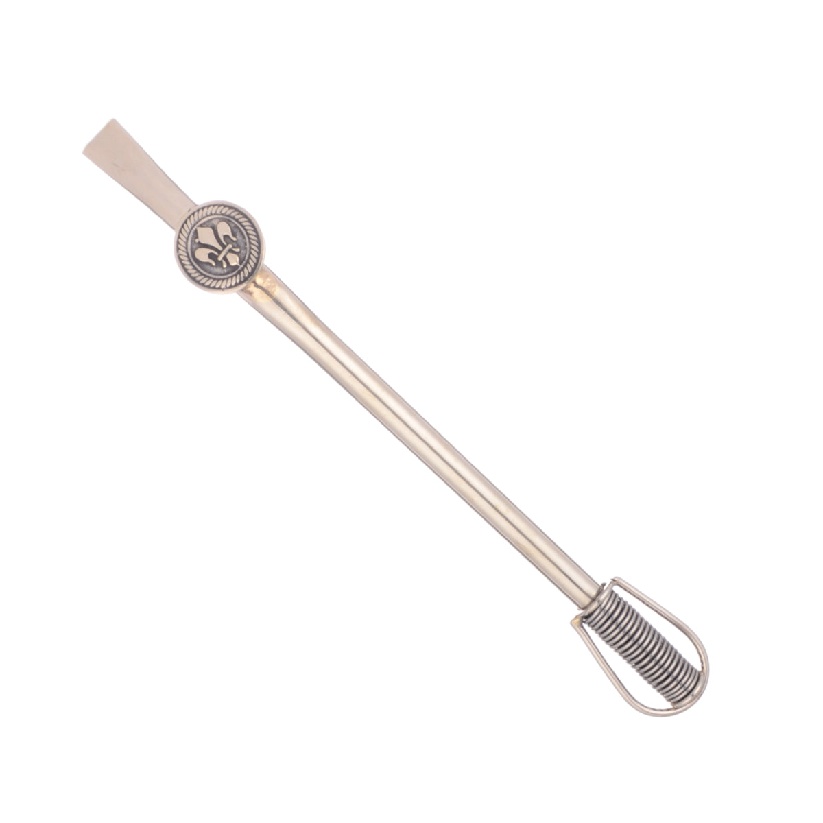 Deze halfgebogen bombilla is gemaakt van 'Duits zilver', ookwel Alpaca (een legering van zink, koper en nikkel), en heeft een afneembare veerfilter. De bombilla wordt met de hand gemaakt door deskundige ambachtslieden die in afgelegen gebieden van Argentinië wonen.