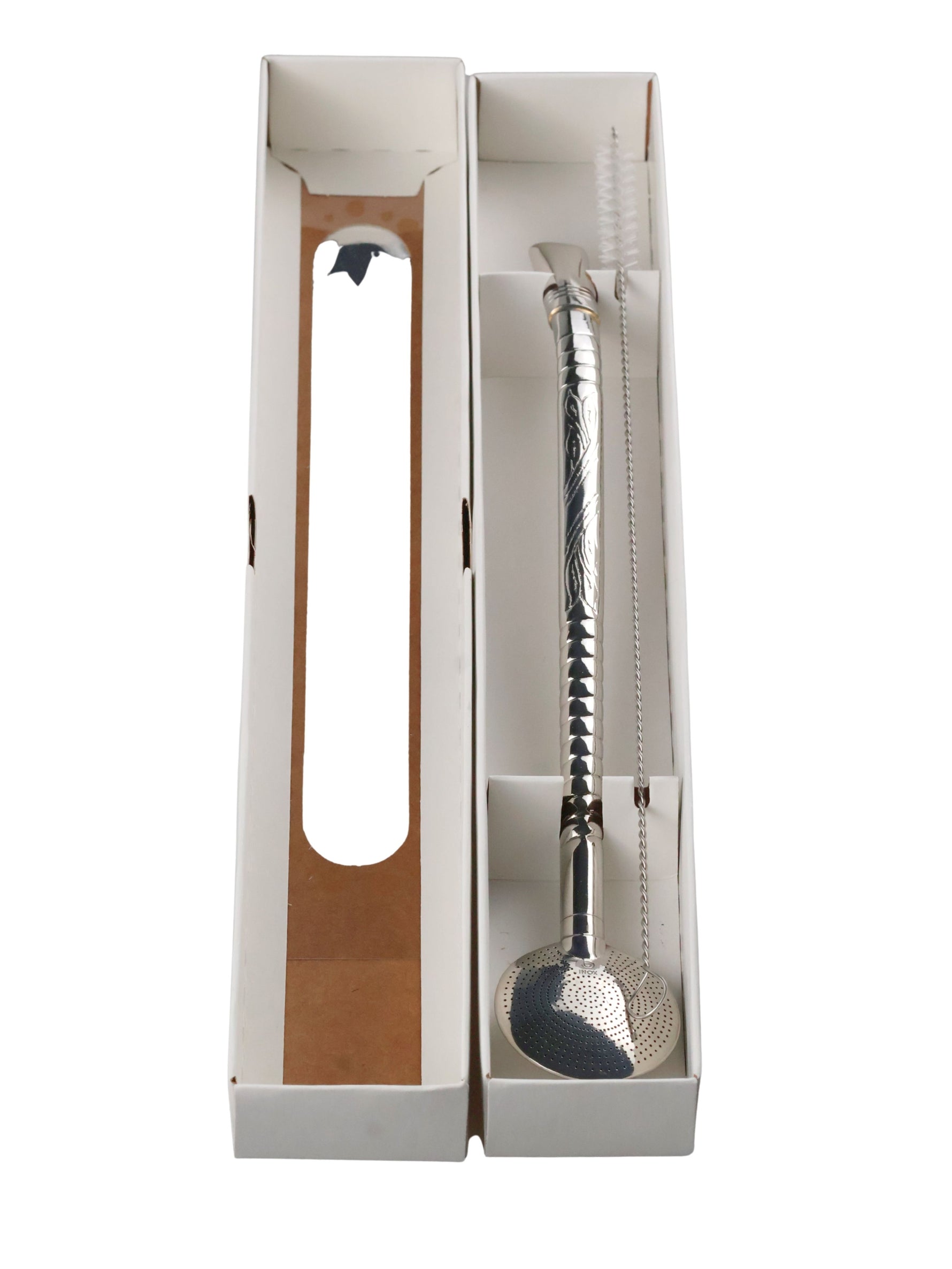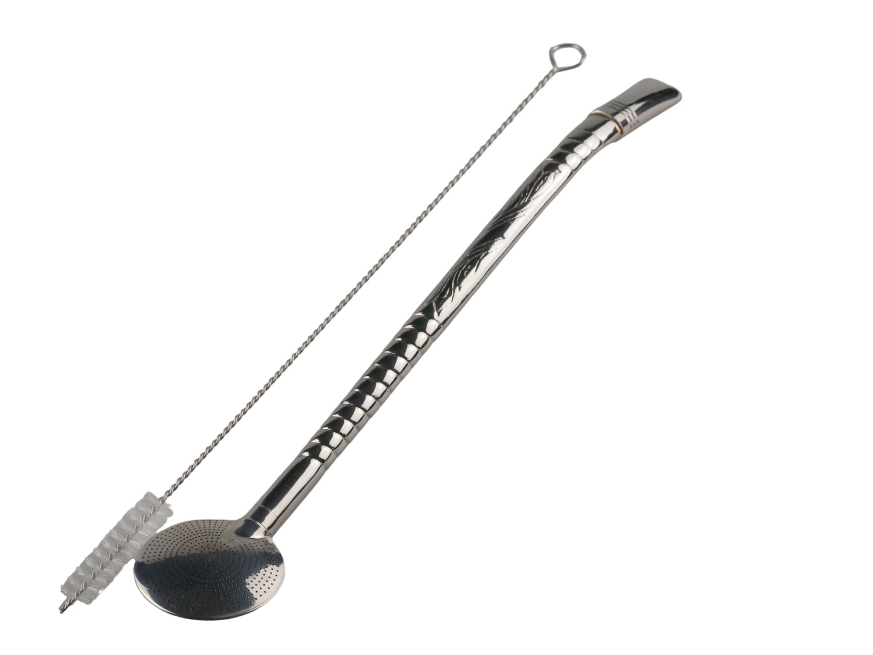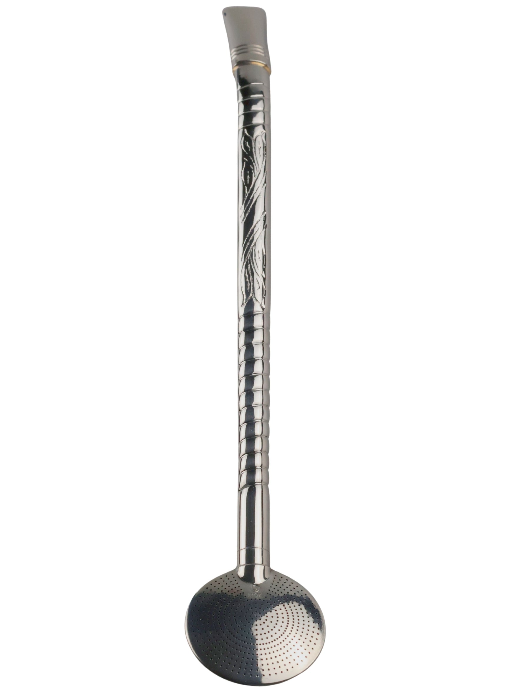 De steel van deze bombilla is fraai versierd, en het mondstuk heeft een geringd design dat comfortabel op de lippen ligt. Gemaakt van duurzaam RVS staal.
